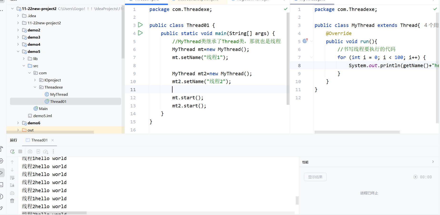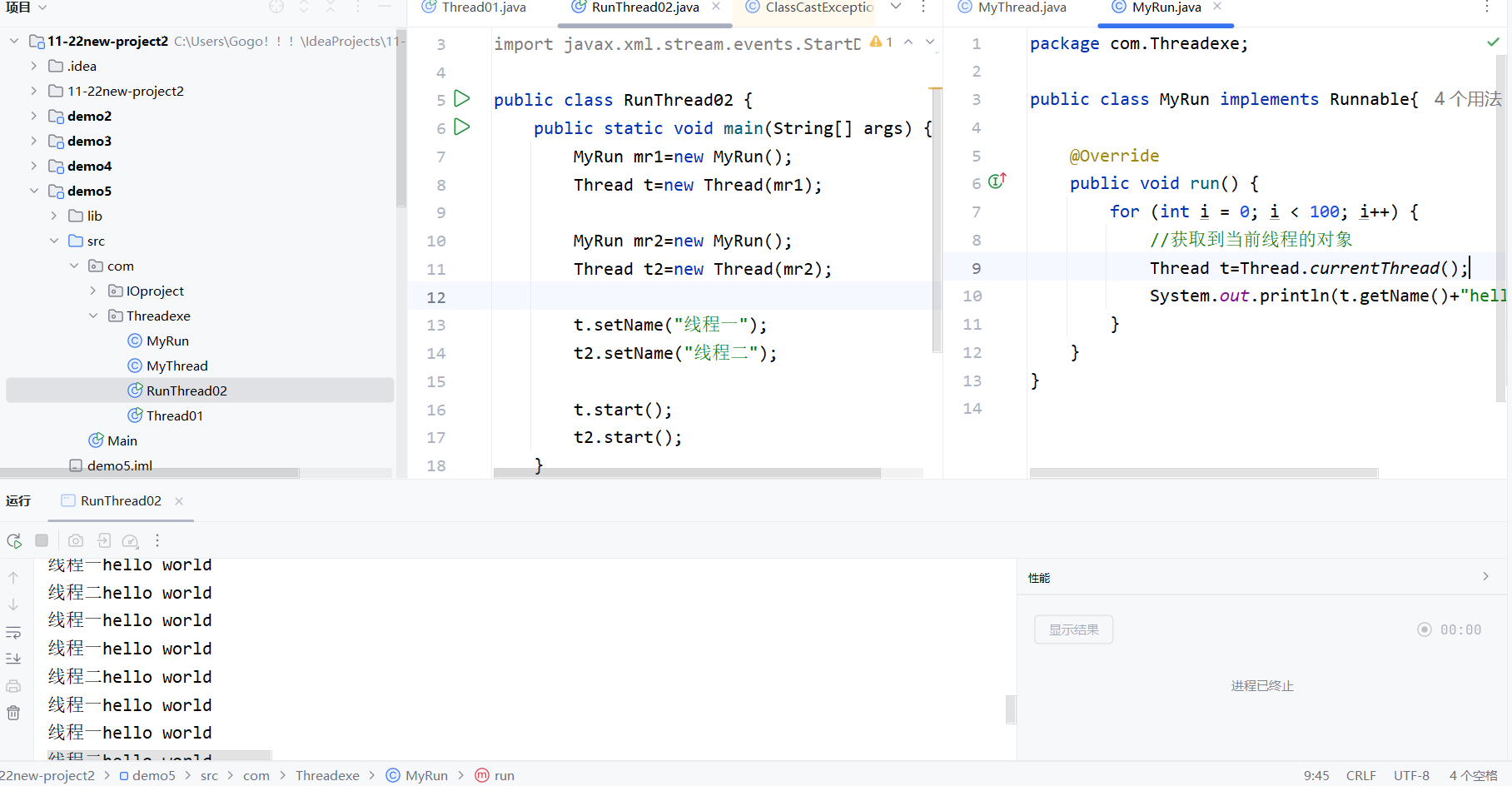 ps:这里有处错误:只用创建一次mr对象即可,创建多个执行任务相同的线程的时候,thread的参数都是mr。