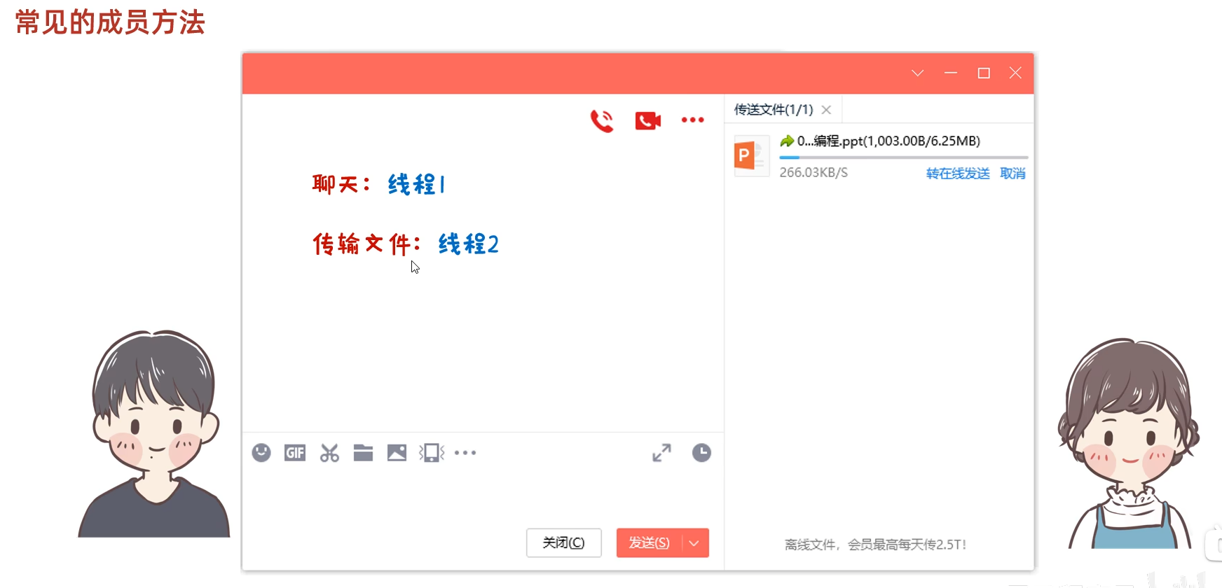 当聊天框关闭之后,文件传输也没必要进行了,传输文件进程设置为守护进程,会陆续关闭,不再传输文件