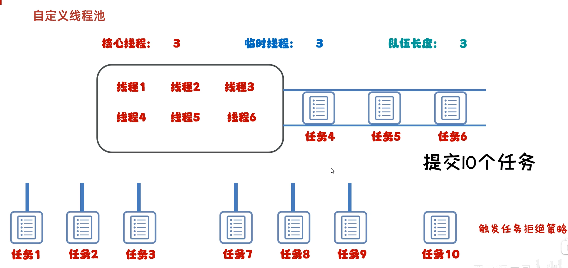 超负荷了已经,多余的任务就直接触发拒绝策略。