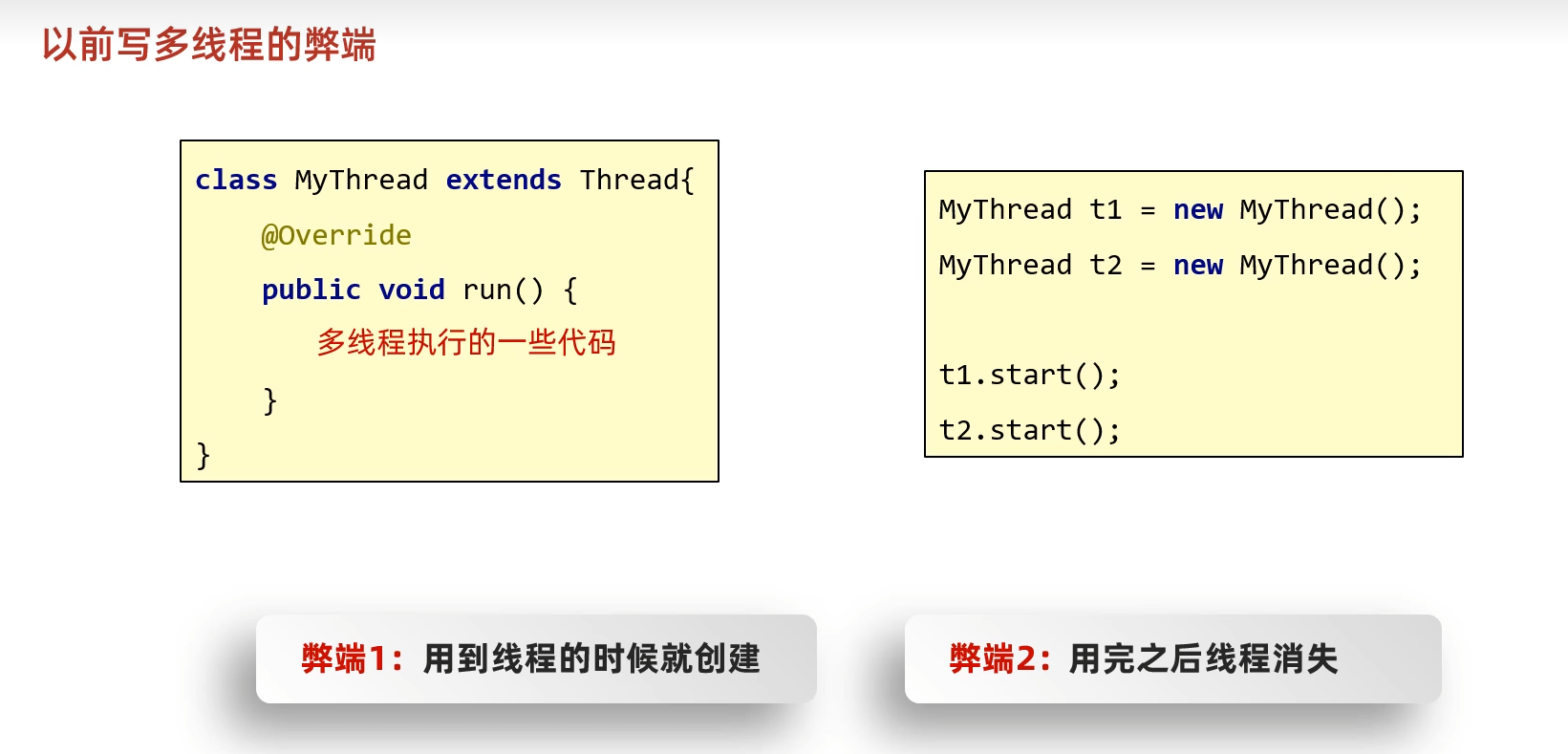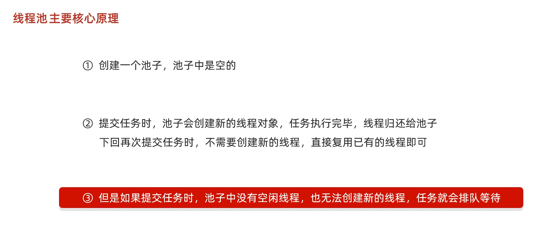 而如果任务很块就执行完了,那就可以复用一开始创建的线程来完成任务。