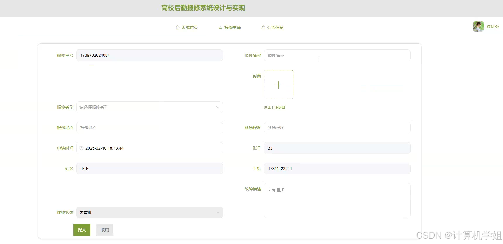 基于Python+Django+Vue+MySQL的高校后勤报修系统,旨在构建一个高效、便捷的数字化报修管理平台。系统采用前后端分离架构,前端以Vue框架实现响应式交互界面,后端基于Django框架搭建RESTful API接口,MySQL数据库负责数据持久化存储。通过整合用户管理、报修申请、工单分配、进度跟踪及评价反馈等核心功能模块,实现报修流程的线上化与透明化。系统支持多角色权限管理,包括学生、后勤人员及管理员,满足不同用户群体的操作需求。研究聚焦于解决传统报修模式中信息传递滞后、流程繁琐、效率低下等问题,通过数字化手段优化资源配置,提升后勤服务响应速度与管理水平。测试结果表明,系统在功能完整性、操作便捷性及数据安全性方面均达到预期目标,能够有效降低人工处理成本,提高师生满意度。该系统的开发不仅为高校后勤管理提供了可复用的技术方案,也为类似场景的数字化转型提供了实践参考,具有较高的应用价值与推广意义。