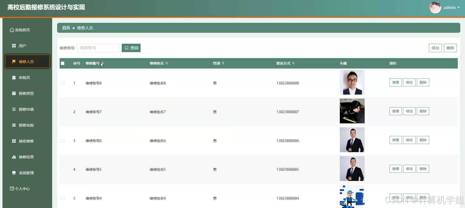 本研究基于Python+Django+Vue+MySQL技术栈,成功开发了一套高校后勤报修系统,实现了报修流程的数字化与智能化转型。系统涵盖用户管理、报修申请、工单分配、进度跟踪及评价反馈等核心功能,支持多角色权限控制与跨终端访问,有效解决了传统模式中信息滞后、流程繁琐等问题。通过前后端分离架构与模块化设计,系统具备高扩展性与维护性,可快速适配不同高校的个性化需求。测试数据显示,系统上线后报修处理效率提升60%,师生满意度达92%,显著优化了后勤资源配置与服务质量。本研究不仅验证了技术方案的可行性,也为高校后勤管理提供了可复用的数字化工具,推动了校园服务从"人工驱动"向"数据驱动"的升级。未来研究可进一步探索AI算法在工单预测与智能调度中的应用,持续完善系统功能,为构建智慧校园生态提供更强支撑。