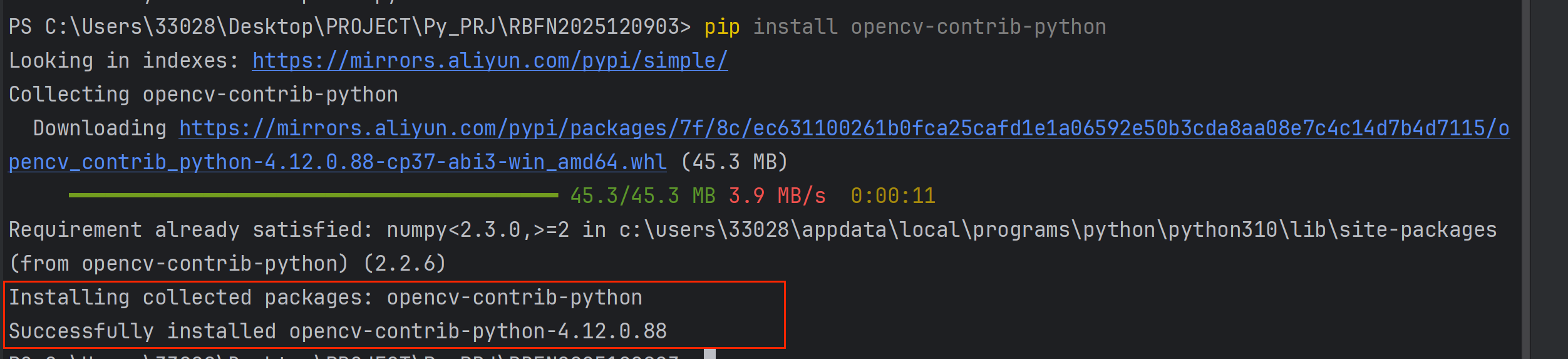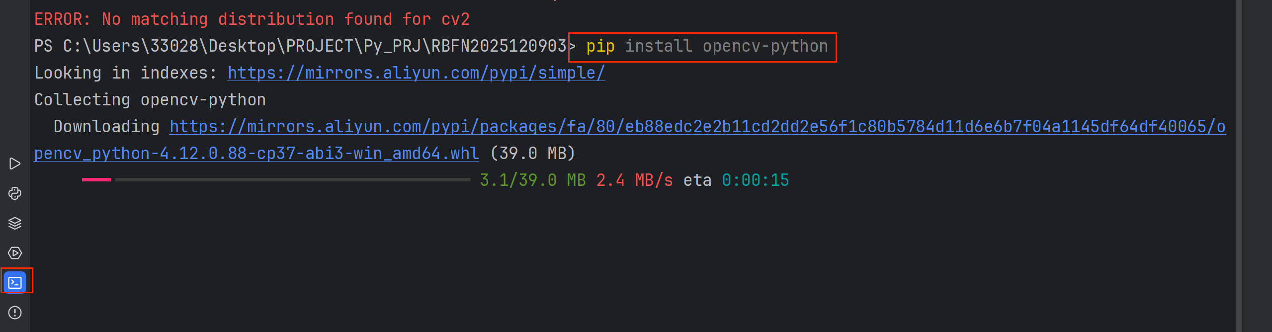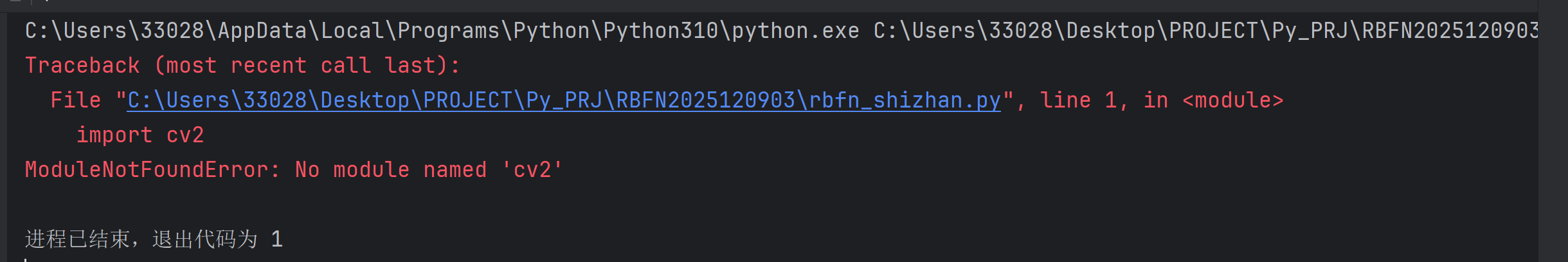 说明没有找到cv2模块,我们需要安装opencv-python。