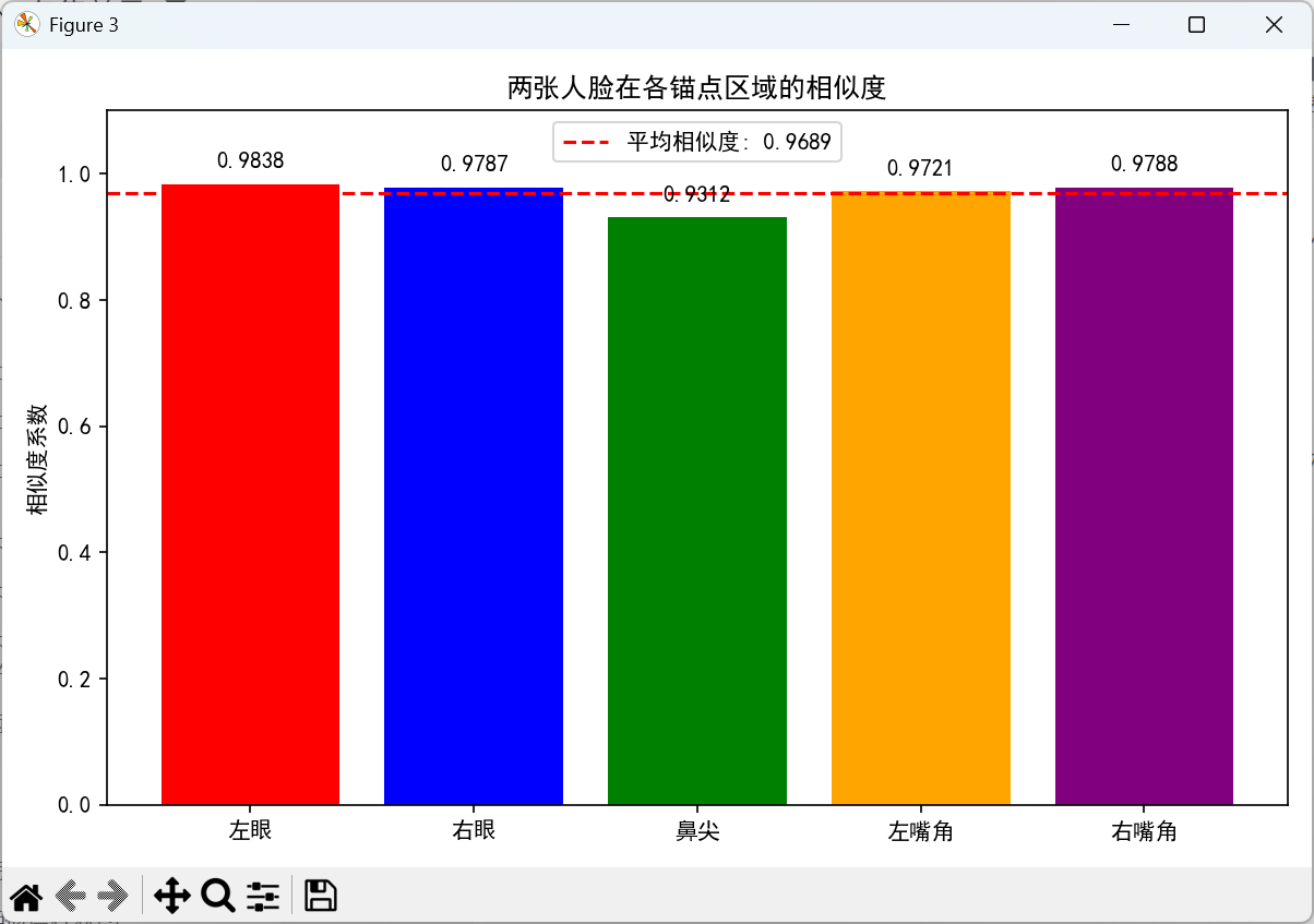 鼻尖区域的相似度相对较低(0.9458),但仍很高