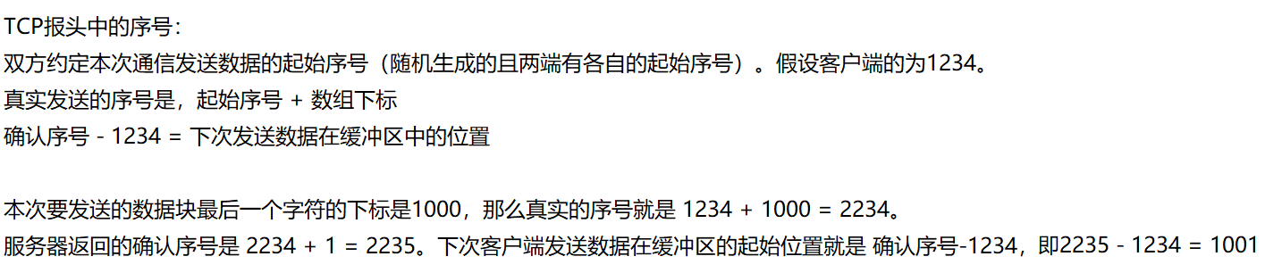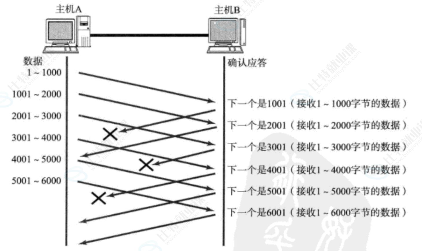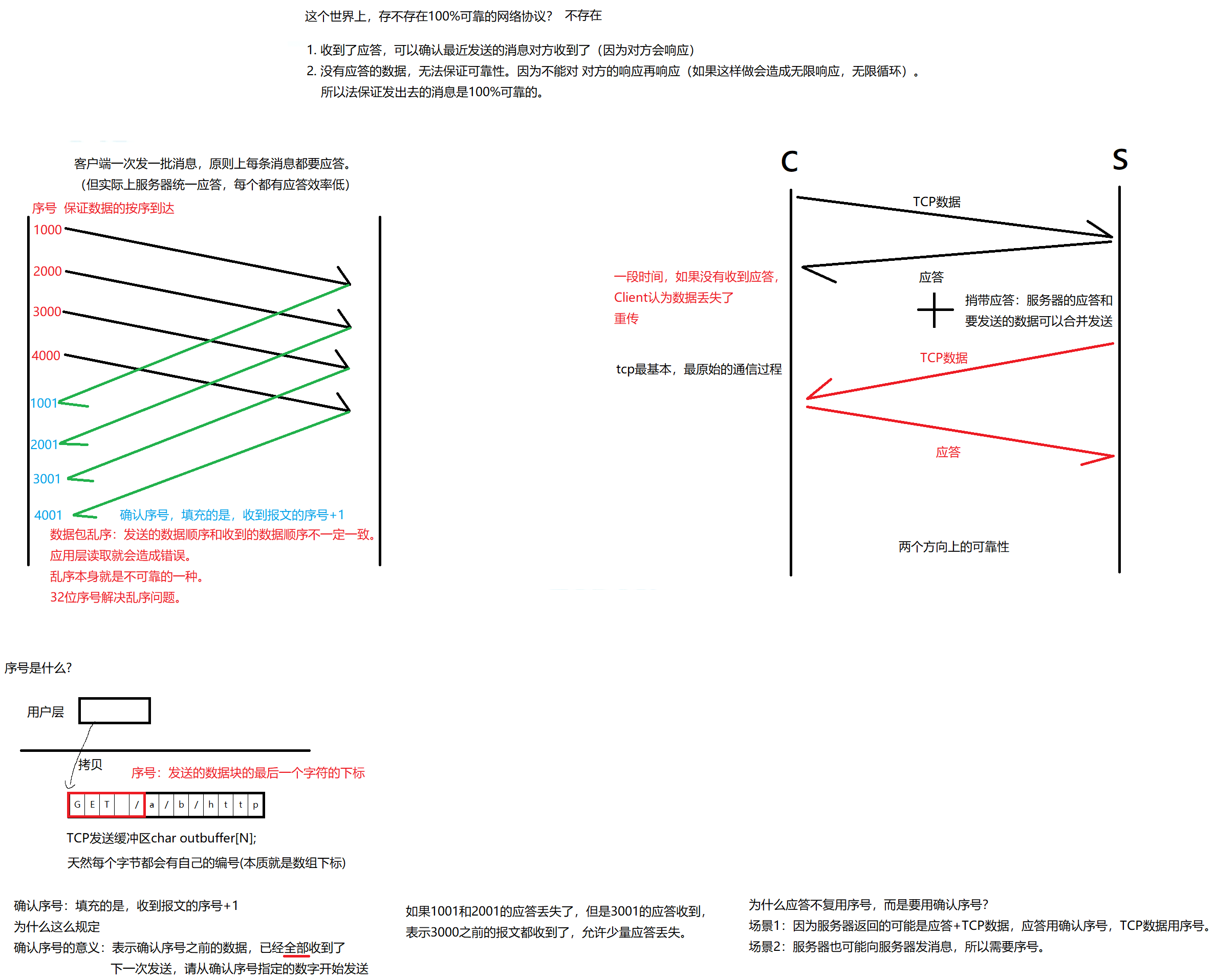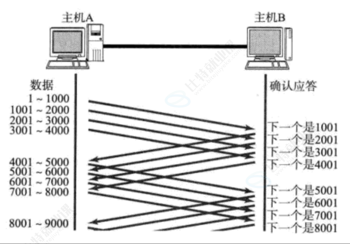 每一个ACK都带有对应的确认序列号,意思是告诉发送者,我已经收到了哪些数据;下一次你从哪里开始发。