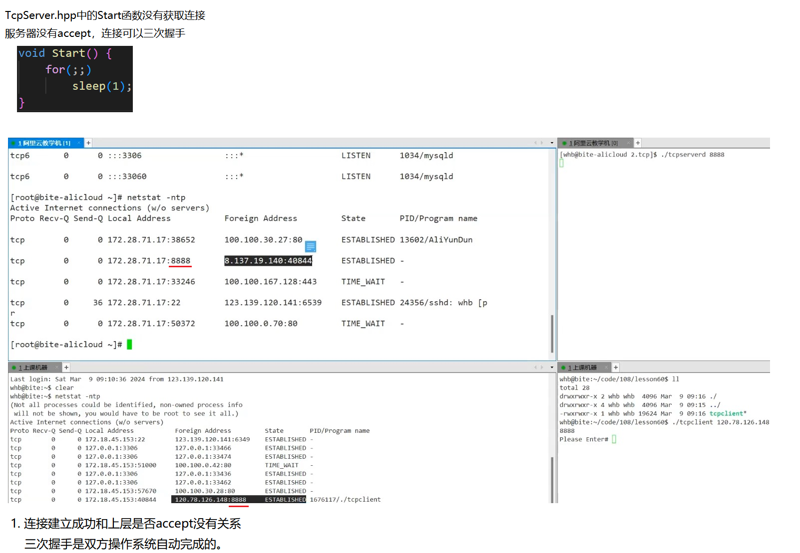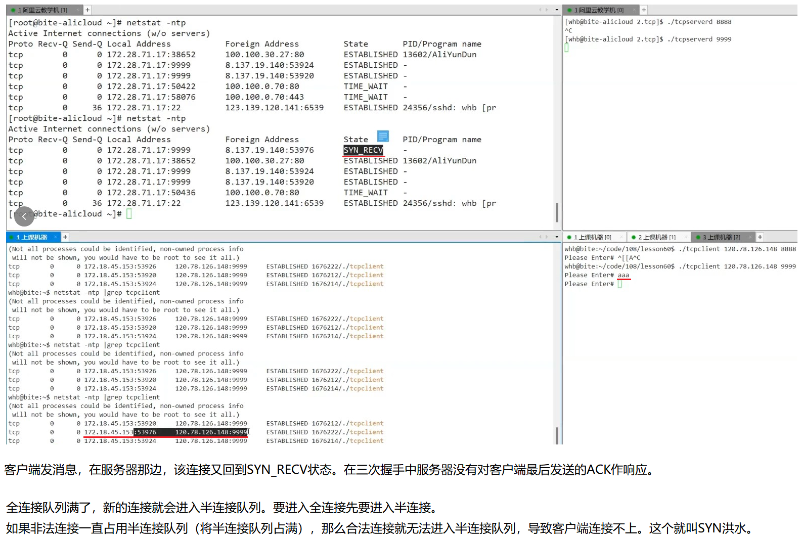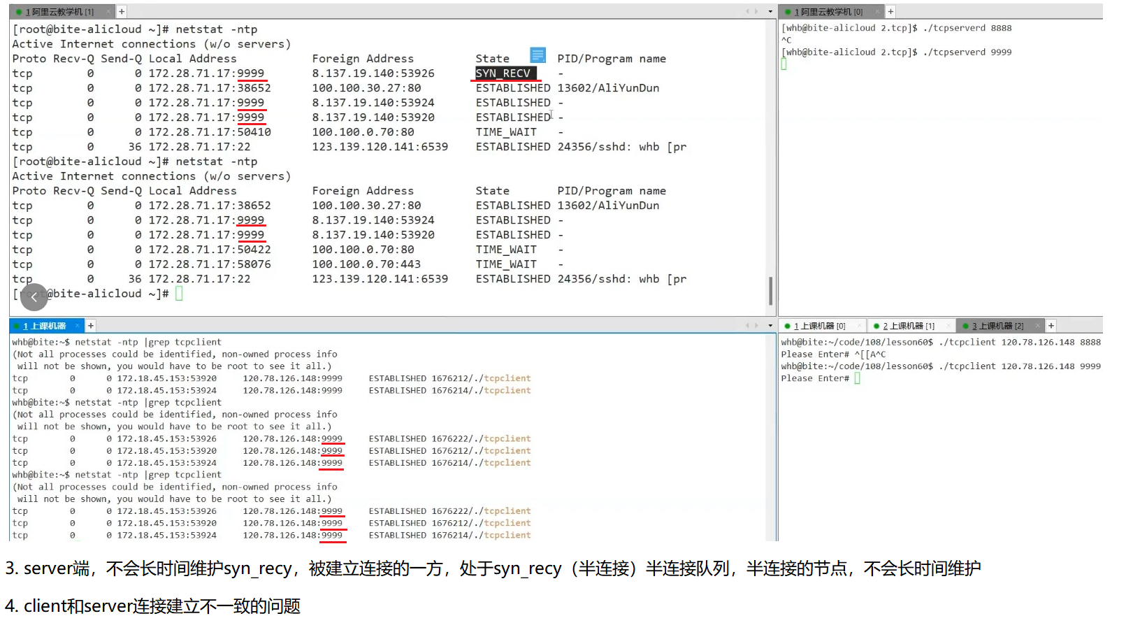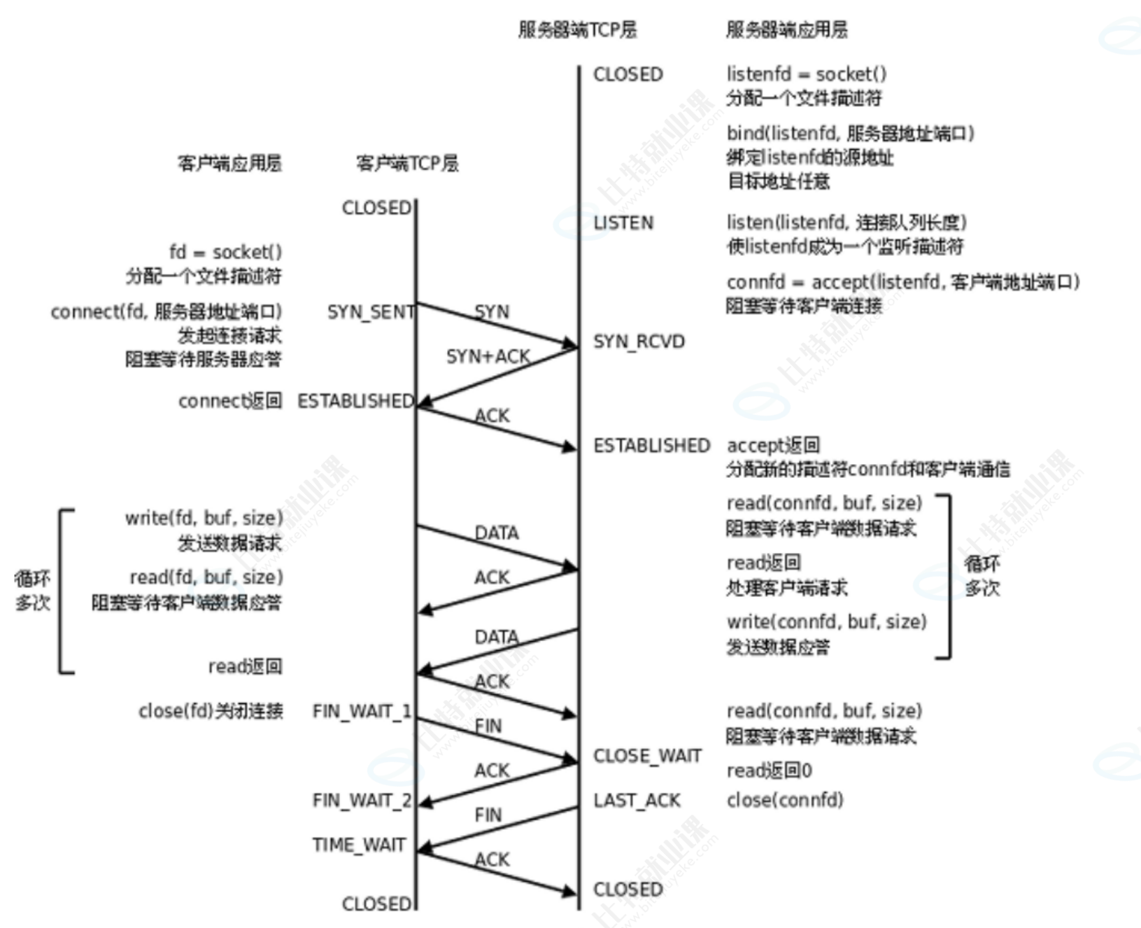SYN_RCVD -\> ESTABLISHED\] 服务器端一旦收到客户端的确认报文,就进入ESTABLISHED状态,可以进行读写数据了。