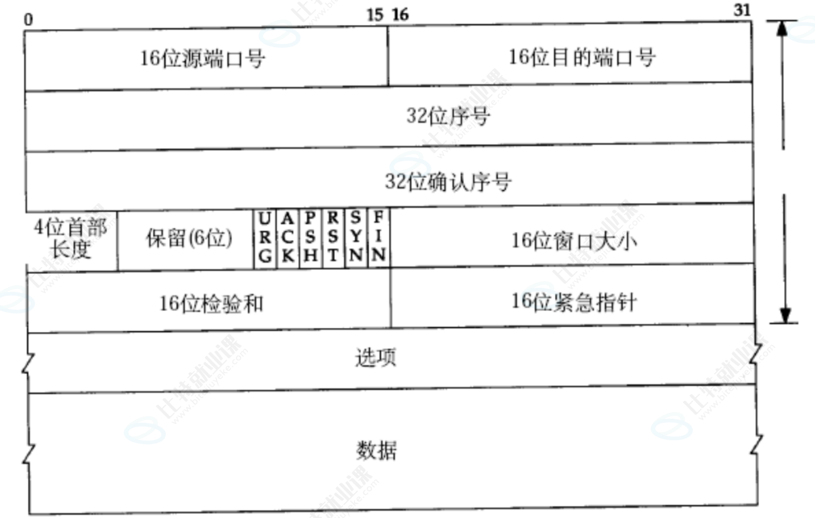 - 16位校验和:发送端填充,CRC校验。接收端校验不通过,则认为数据有问题。此处的检验和不光包含TCP首部,也包含TCP数据部分。