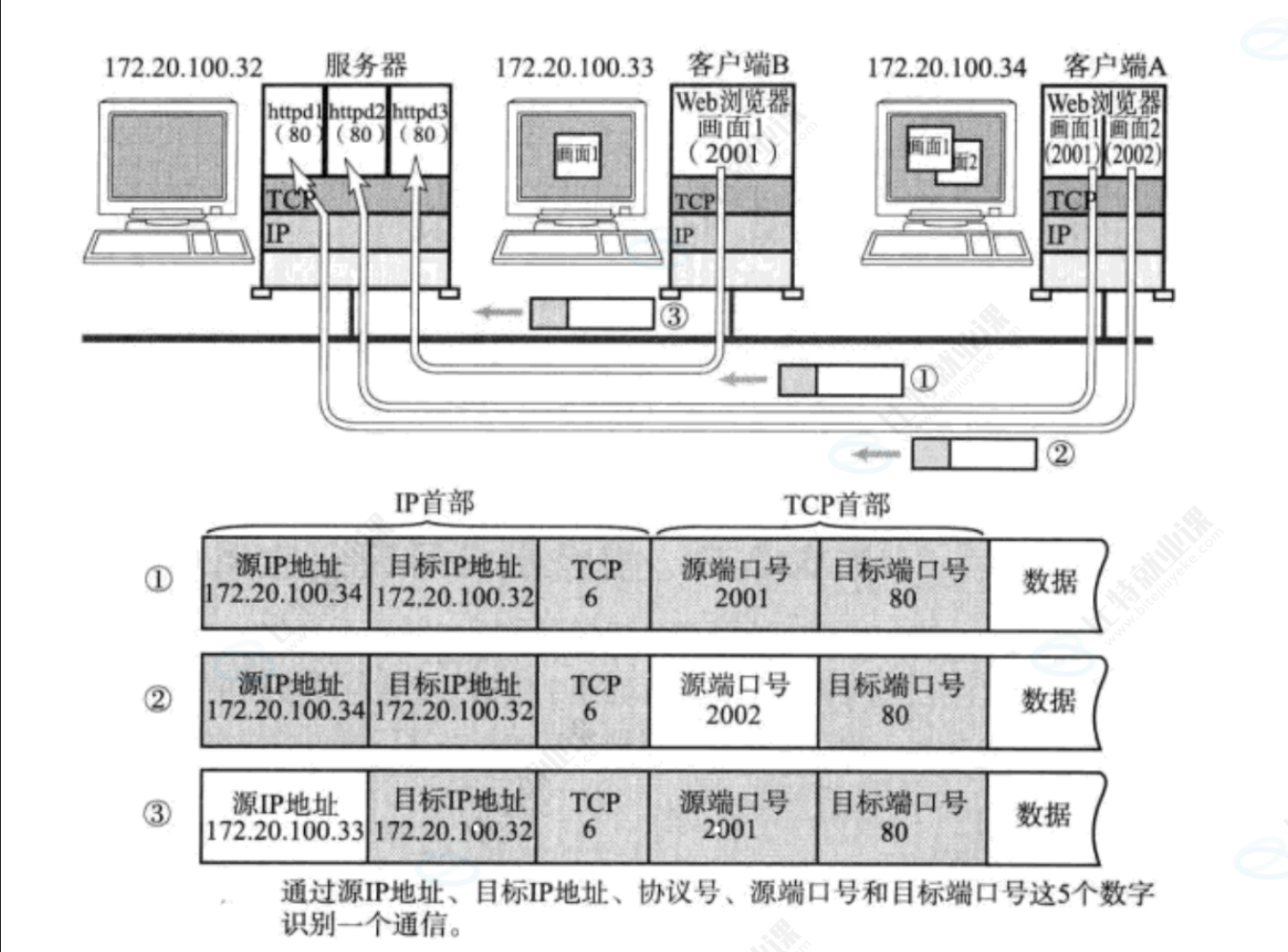 在TCP/IP协议中,用"源IP"、"源端口号"、"目的IP"、"目的端口号"、"协议号"这样一个五元组来标识一个通信(可以通过netstat -n查看);