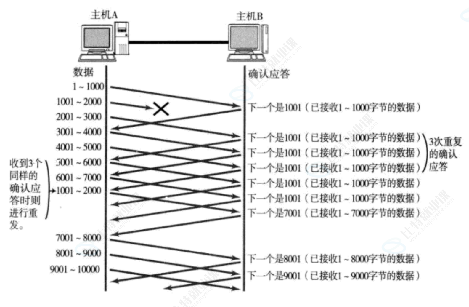 因此主机B会收到很多重复数据。那么TCP协议需要能够识别出那些包是重复的包,并且把重复的丢弃掉。