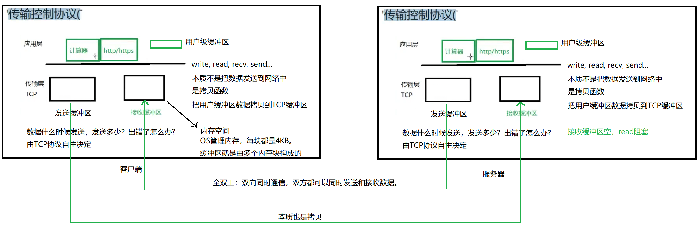 - UDP没有真正意义上的发送缓冲区。调用sendto会直接交给内核,由内核将数据传给网络层协议进行后续的传输动作;