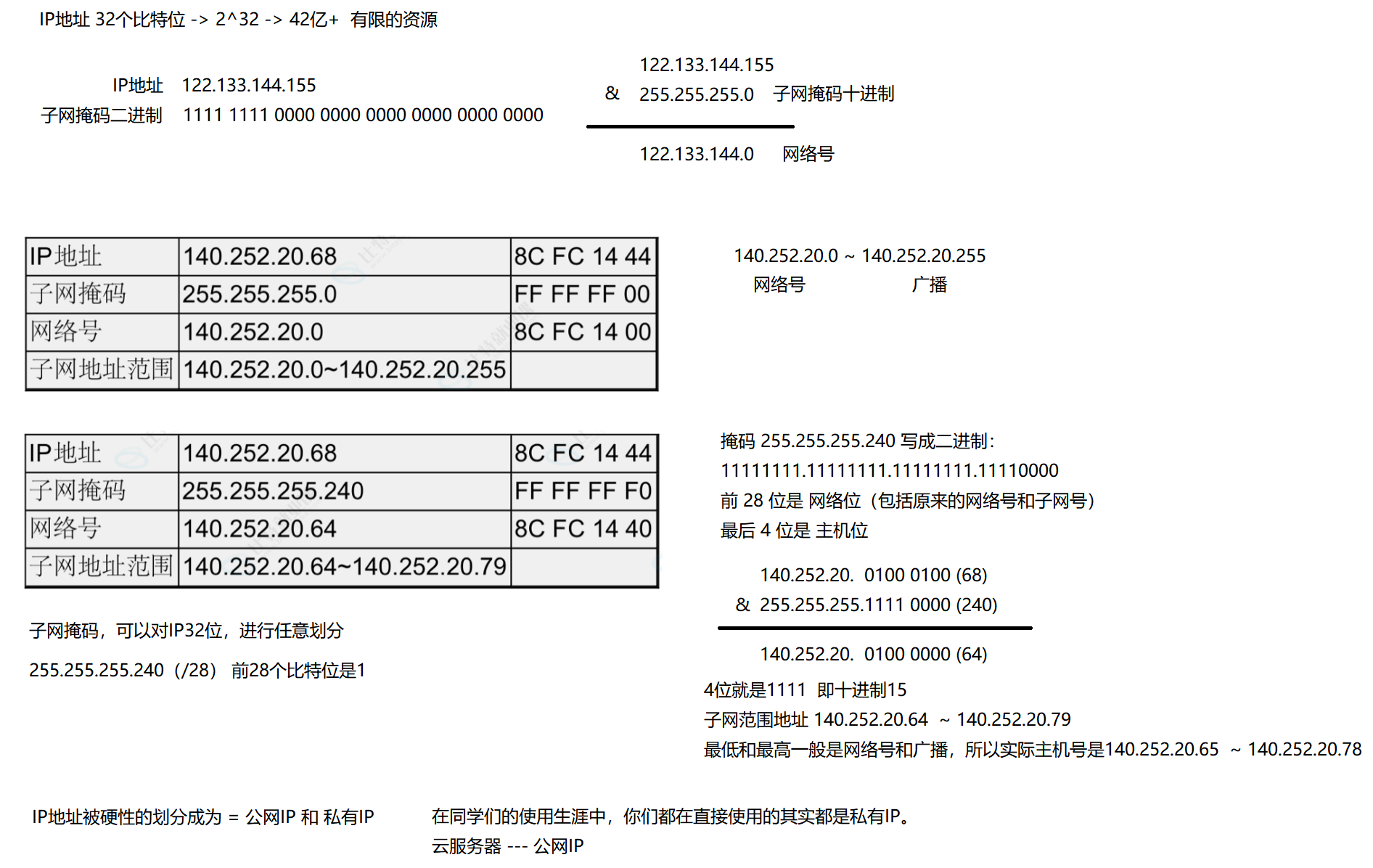 - E类地址:240.0.0.0 ~255.255.255.255,后27位待用