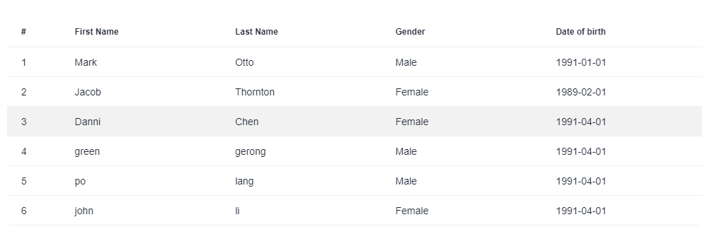 先是基本用法:简单表格,展示列表数据 支持两种实现方式,方式一通过自定义head、body模板和其中的行、单元格来实现,方式二通过配置column来实现。