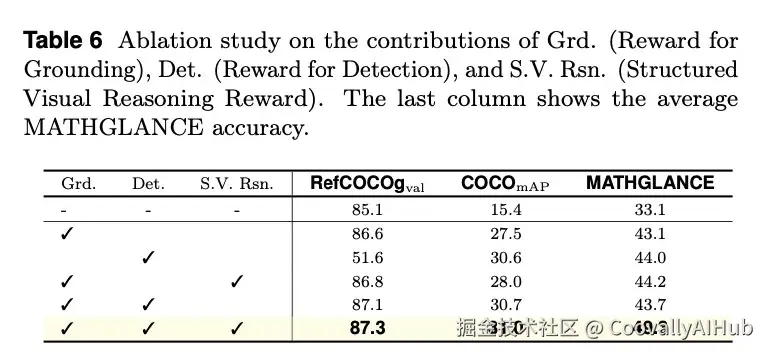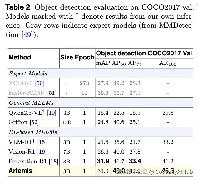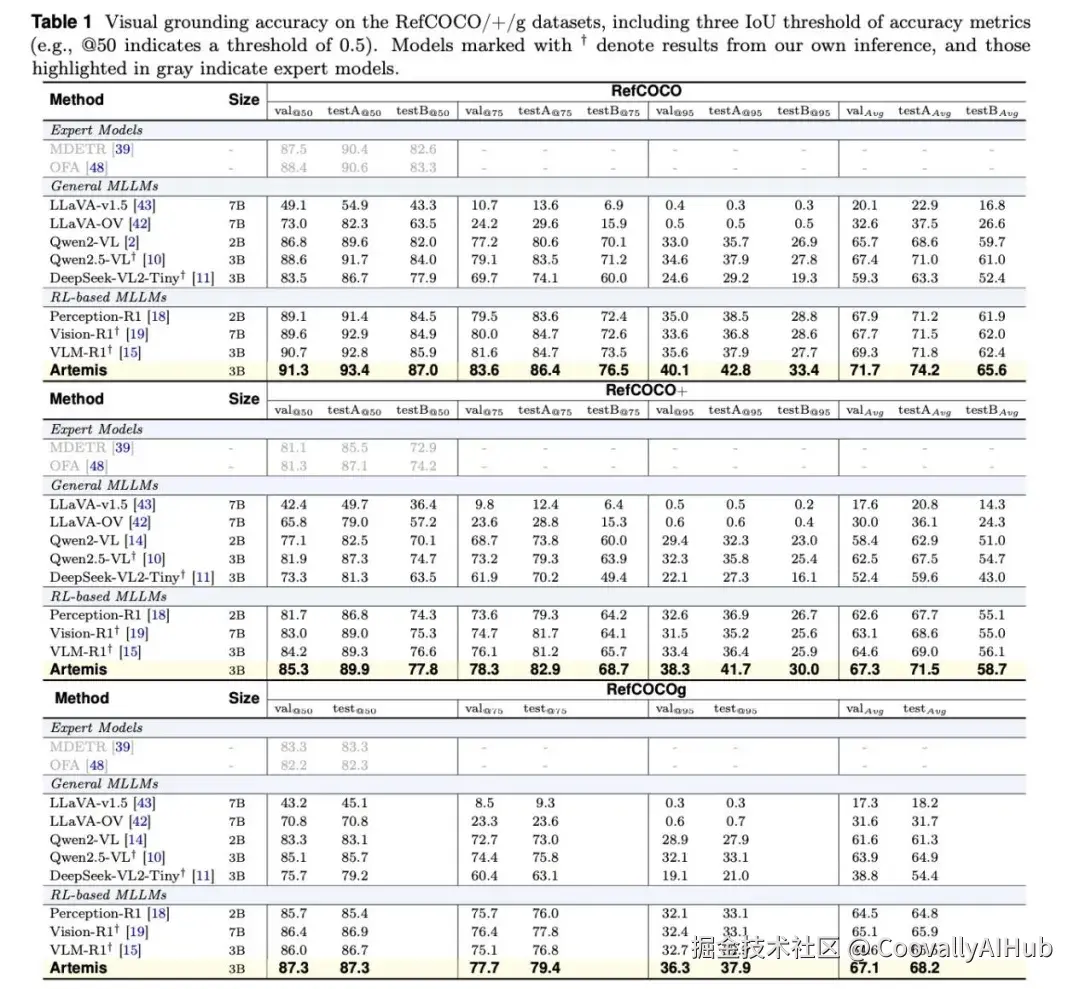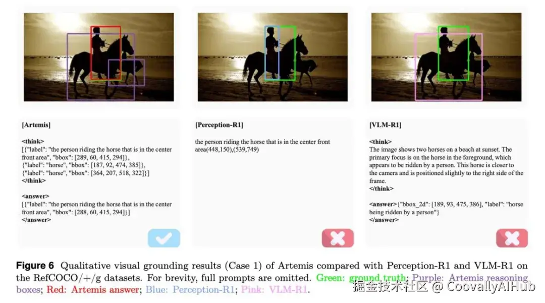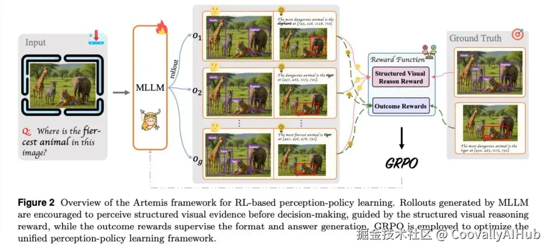 - 结构化视觉推理奖励: 这是Artemis的灵魂。它设计了一套精细的奖励机制,不仅鼓励模型找出最终答案的关键对象,也奖励其识别出相关的上下文对象。这就像解题时,不仅要求答案正确,还要求列出关键的已知条件和推导步骤。