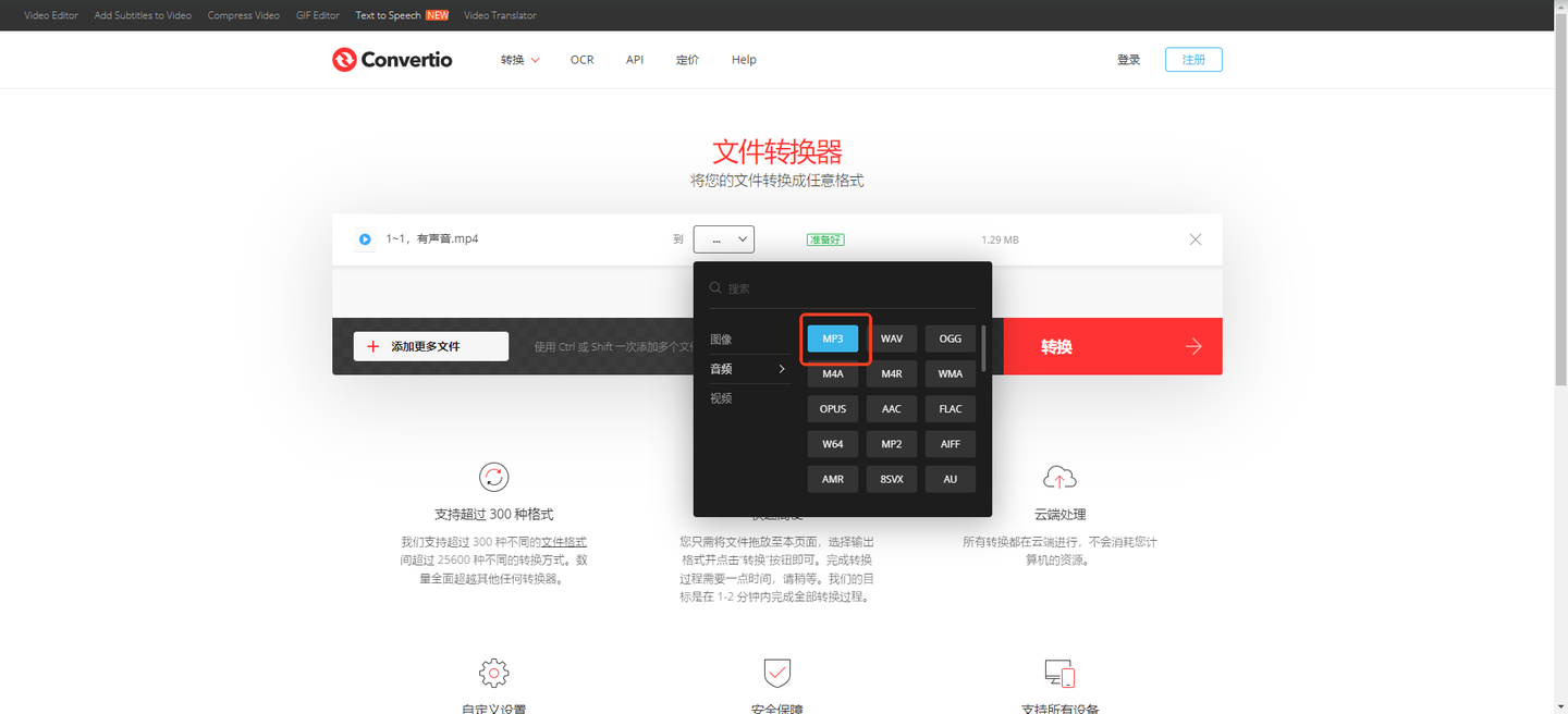 2、通过『Convertio』将mp4转为mp3