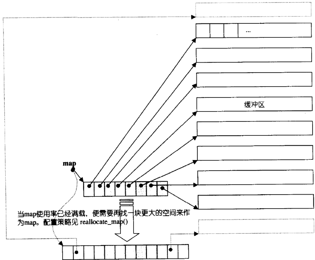 map(控制数组),存放指向"缓冲区(buffer)"的指针; -