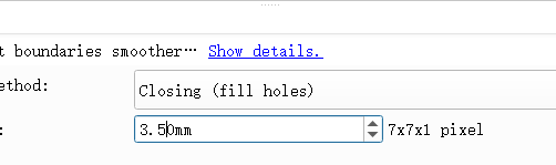 经过仔细检查 Slicer 的参数反馈,我发现了问题的端倪。在设置 Kernel size 为 3.0mm 时,参数栏右侧显示的小字是: