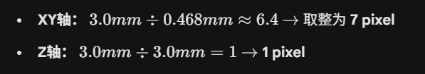 Slicer 在计算滤波核的像素尺寸时是这样换算的: