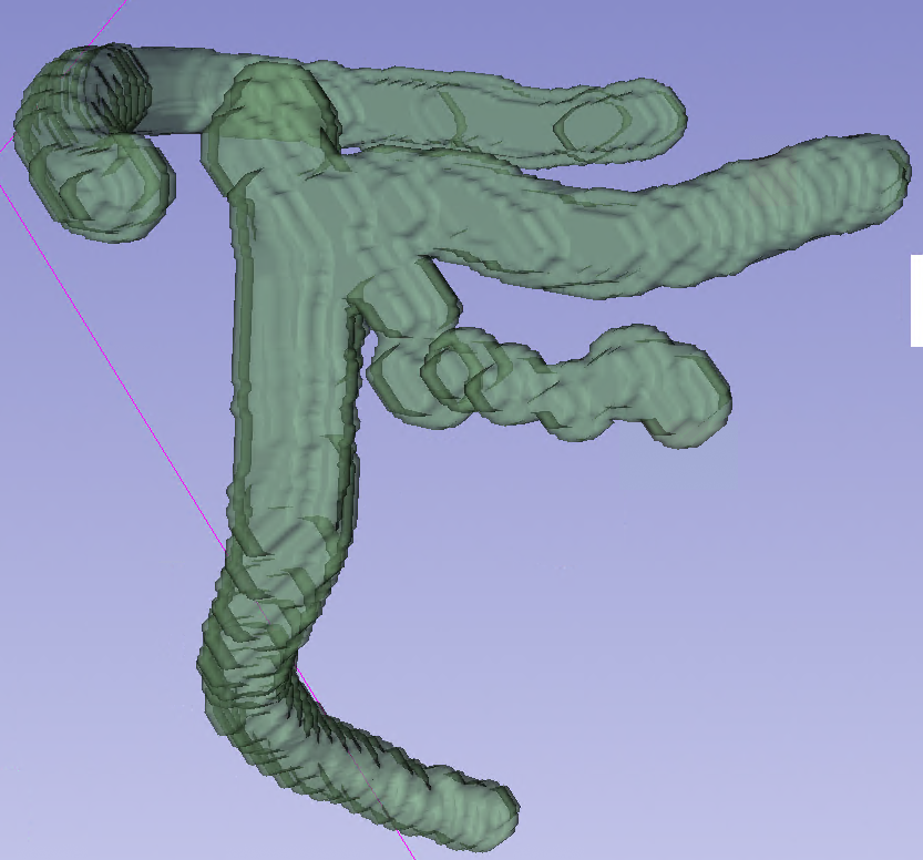 原理: 把血管"瘦身"回原来的粗细。由于第一步已经建立了实体的体素连接,这一步收缩时,连接处会被保留下来,不会像 Closing 那样被切断。