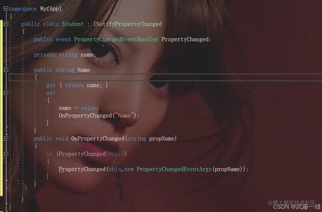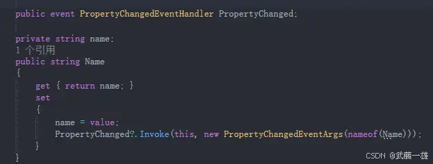 第一个参数 也就是触发这个事件的对象(this) ,第二个参数 实际上告诉是哪个属性发生了变化(new PropertyChangedEventArgs(propName)) ,所以是个字符串,表示当前属性的名称。