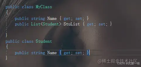 我们在创建一个班级类,班级类有一个Name属性,还有一个Student集合,代表有多个学生。