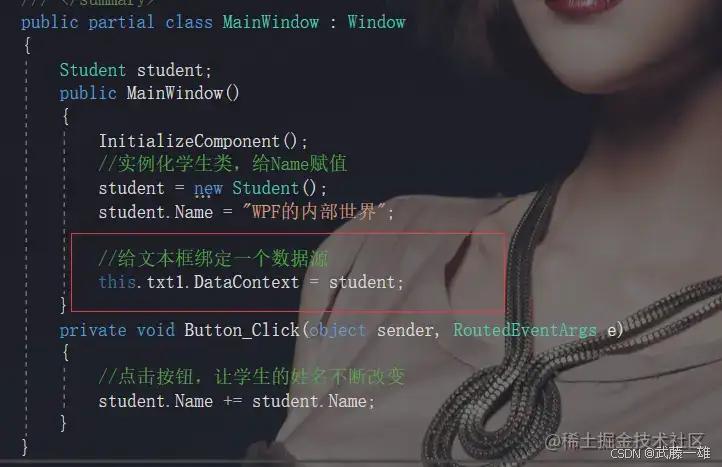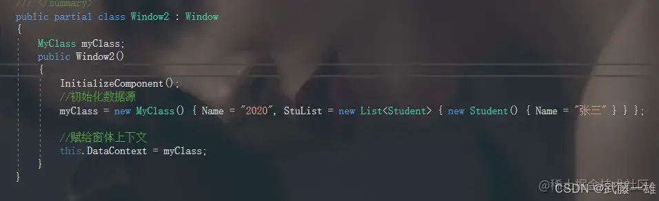 - DataContext属性定义在FrameworkElement类里,这个类是WPF控件的基类,这就意味着,所有控件都有这个属性。