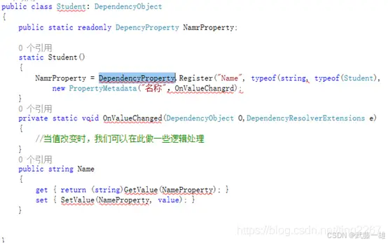为该依赖属性声明一个公共的 CLR 属性包装器(property wrapper)。 这个包装器包含 get 和 set 访问器,它们分别使用 GetValue() 和 SetValue() 方法来访问和设置依赖属性的值。