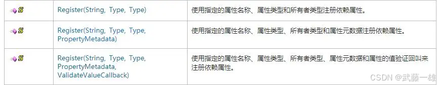 在类的静态构造函数中,使用 DependencyProperty.Register() 方法注册依赖属性。Register() 方法需要提供