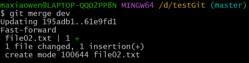 例如,在dev2分支创建文件并添加到暂存区和版本库的过程在其他分支可以看到,但是最后提交后的文件无法在其他分支看到。(需要分支合并)