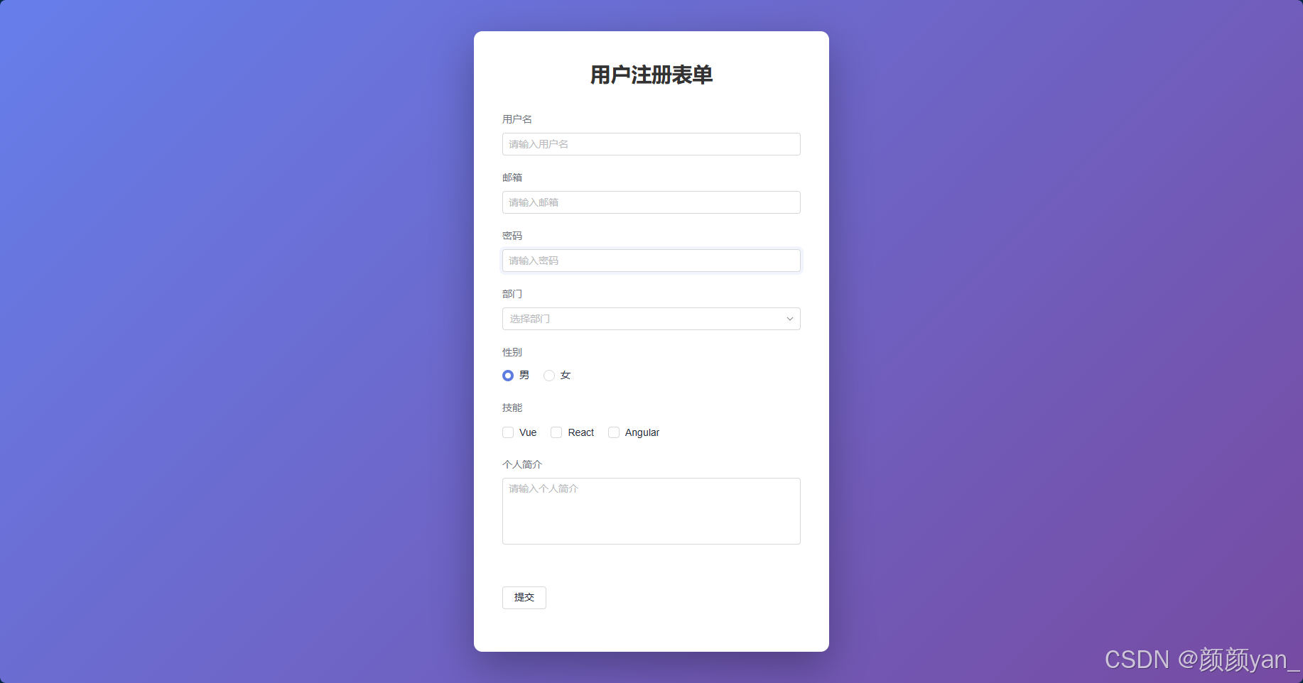 在浏览器中访问 http://localhost:5173,你会看到一个完整的注册表单!