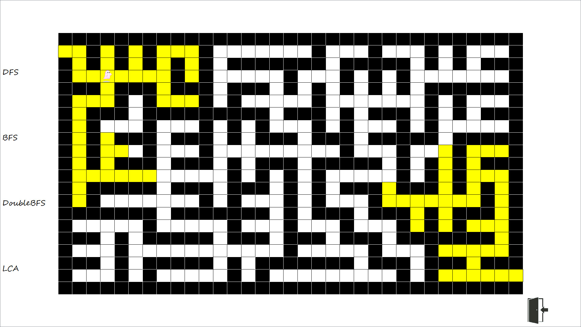 f4mazedemo.h/cpp 迷宫算法演示类,继承QgraphicsScene,内涵DFS,BFS,双BFS,LCA等算法,展示寻路算法 -