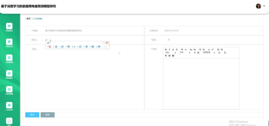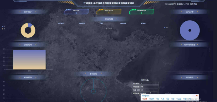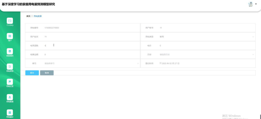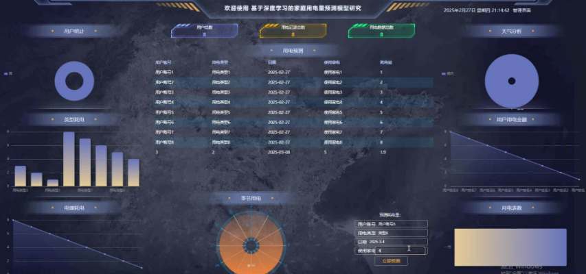 设计目标:建成一个用Python结合MySQL数据库开发的基于深度学习的家庭用电量预测系统。该系统具备动态管理用户信息的功能,并建立完善的基础数据库,提高系统整体性能。