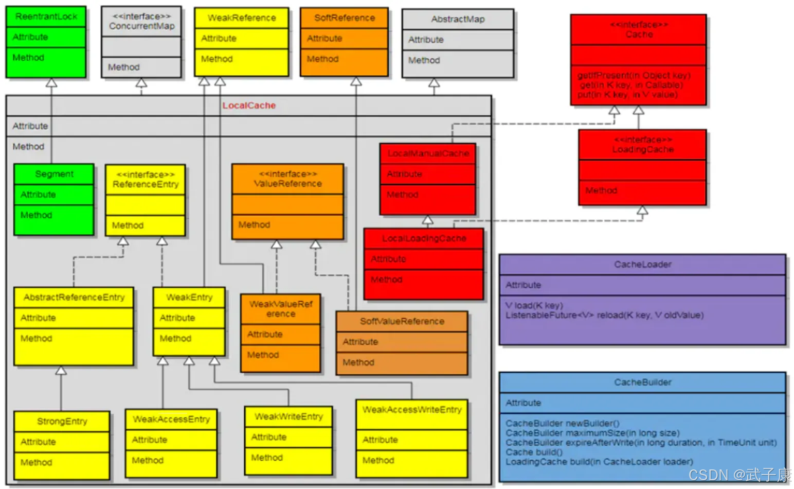 LoadingCache这些类表示获取Cache的方式,可以有多种方式,但是他们的方法最终调用到LocalCache的方法,LocalCache是Guava Cache的核心类。