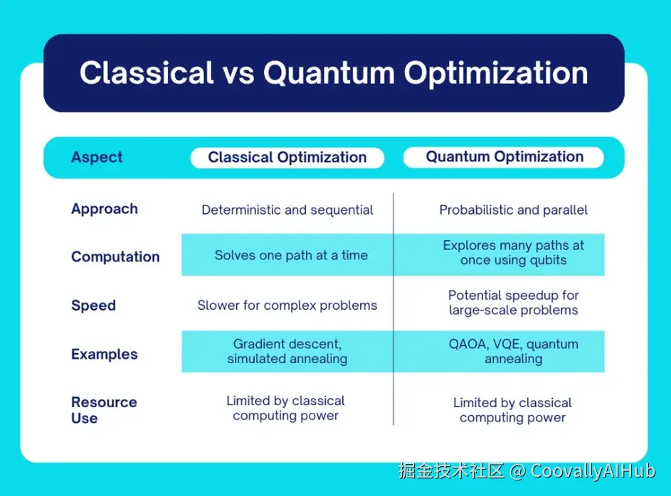 以下是经典优化与量子优化方法之间的几个关键区别: