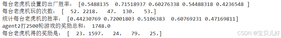 print("agent2打2500轮游戏的奖励总和:", sum(agent2.ns * agent2.Qs))