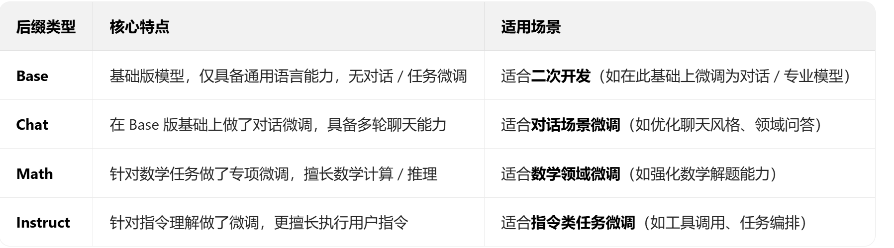 当你选择大模型时可以发现有很多版本,这些模型名称中的后缀(
