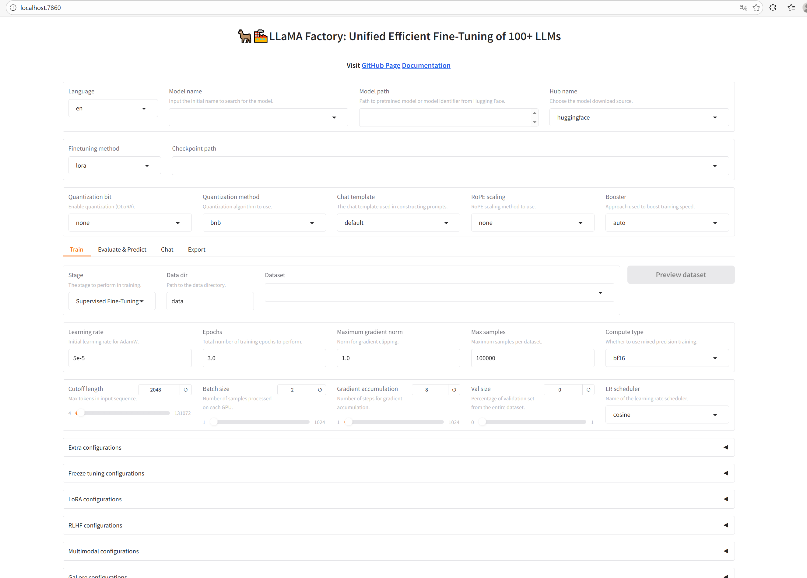 requirements.txt去下载安装相关依赖,完全匹配当前分支的依赖版本,避免 "手动指定版本出错"。安装好后可以执行llamafactory-cli version来快速校验安装是否成功,如下界面就是安装成功了,然后执行运行webui.py的代码就可以得到下图界面