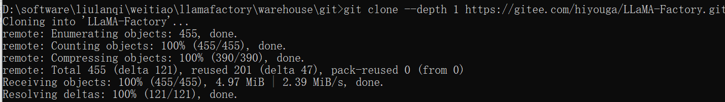 # 克隆完整仓库(不限制depth,确保文件齐全) git clone https://gitee.com/hiyouga/LLaMA-Factory.git