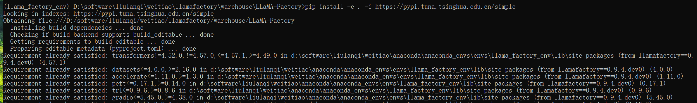 pip install -e ".[torch,metrics]" -i https://pypi.tuna.tsinghua.edu.cn/simple之前在