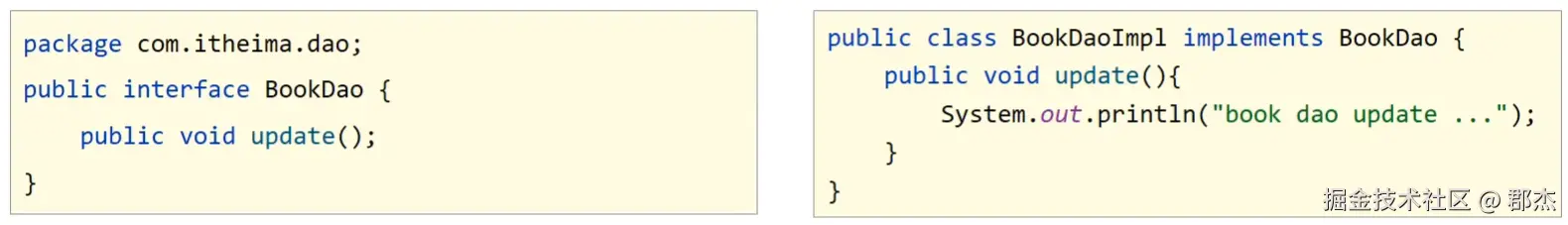 save()方法:只输出"book dao save ..."update()方法:只输出"book dao update ..."