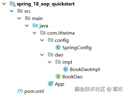 2. **准备连接点** - 创建Dao接口和实现类(原始业务代码)