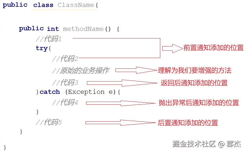 **Spring是如何实现的**:\ <img src="https://p3-xtjj-sign.byteimg.com/tos-cn-i-73owjymdk6/d67eb945a0b643b3915d10af9e5e1088~tplv-73owjymdk6-jj-mark-v1:0:0:0:0:5o6Y6YeR5oqA5pyv56S-5Yy6IEAg6YOh5p2w:q75.awebp?rk3s=f64ab15b&x-expires=1765985902&x-signature=C9ZBbkcu2HchOCCkBePTgtqtdp0%3D" alt="image.png" width="100%">