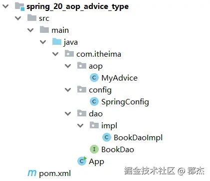**技术选择**:Spring AOP支持XML配置和注解两种方式,由于注解方式更简洁、现代,我们选择使用**注解方式**开发。