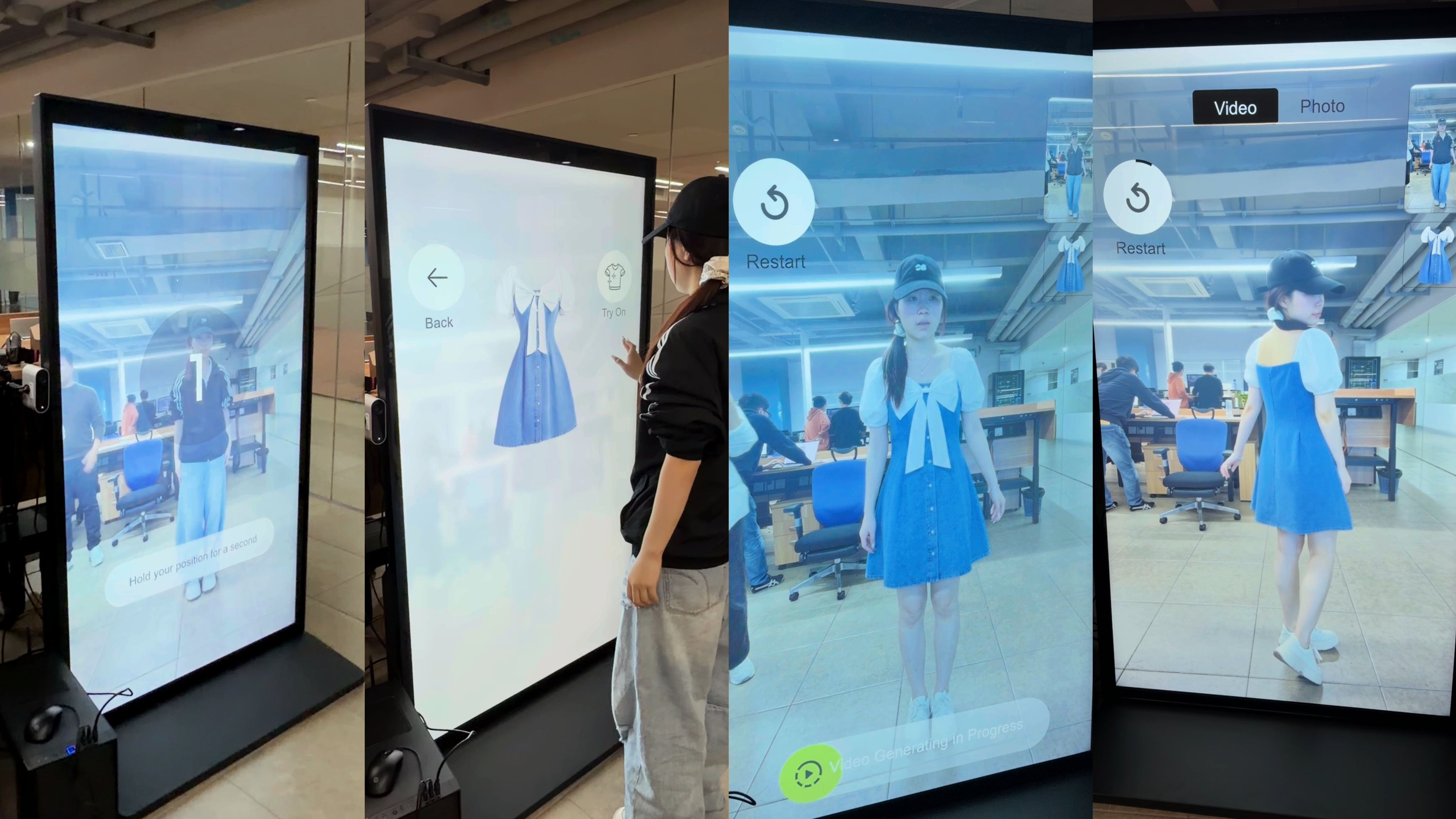Dreamfit AI试衣屏:拍照-选择服装-生成图片-动态视频
