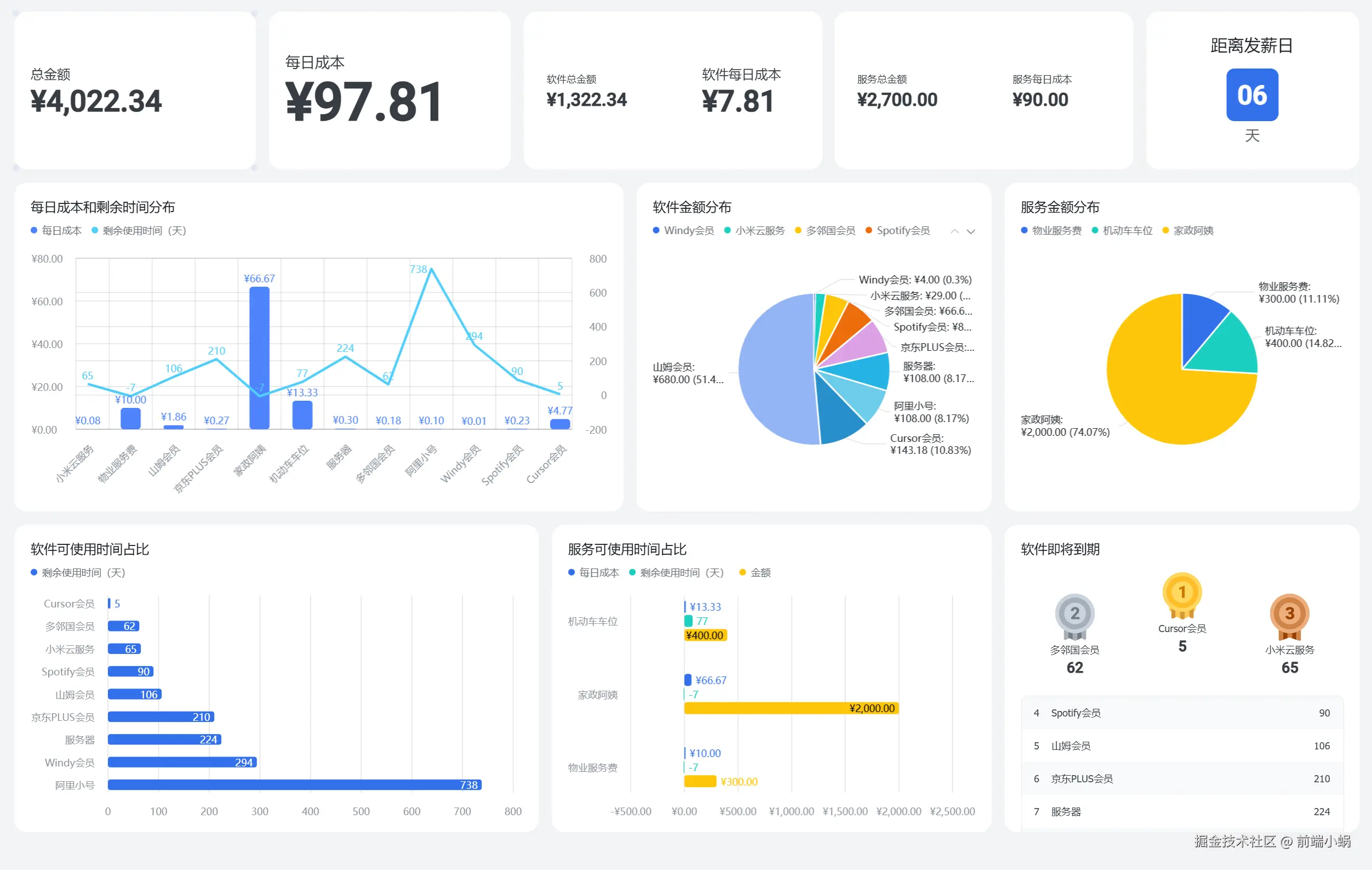 在我的仪表盘里,所有软件和服务都会自动算出每天要花多少钱。 看着那个排行榜,我发现 Cursor会员 这种生产力工具,每天成本要 4.77元 ,而 Windy会员 这种偶尔看天气的,每天只要 0.01元。