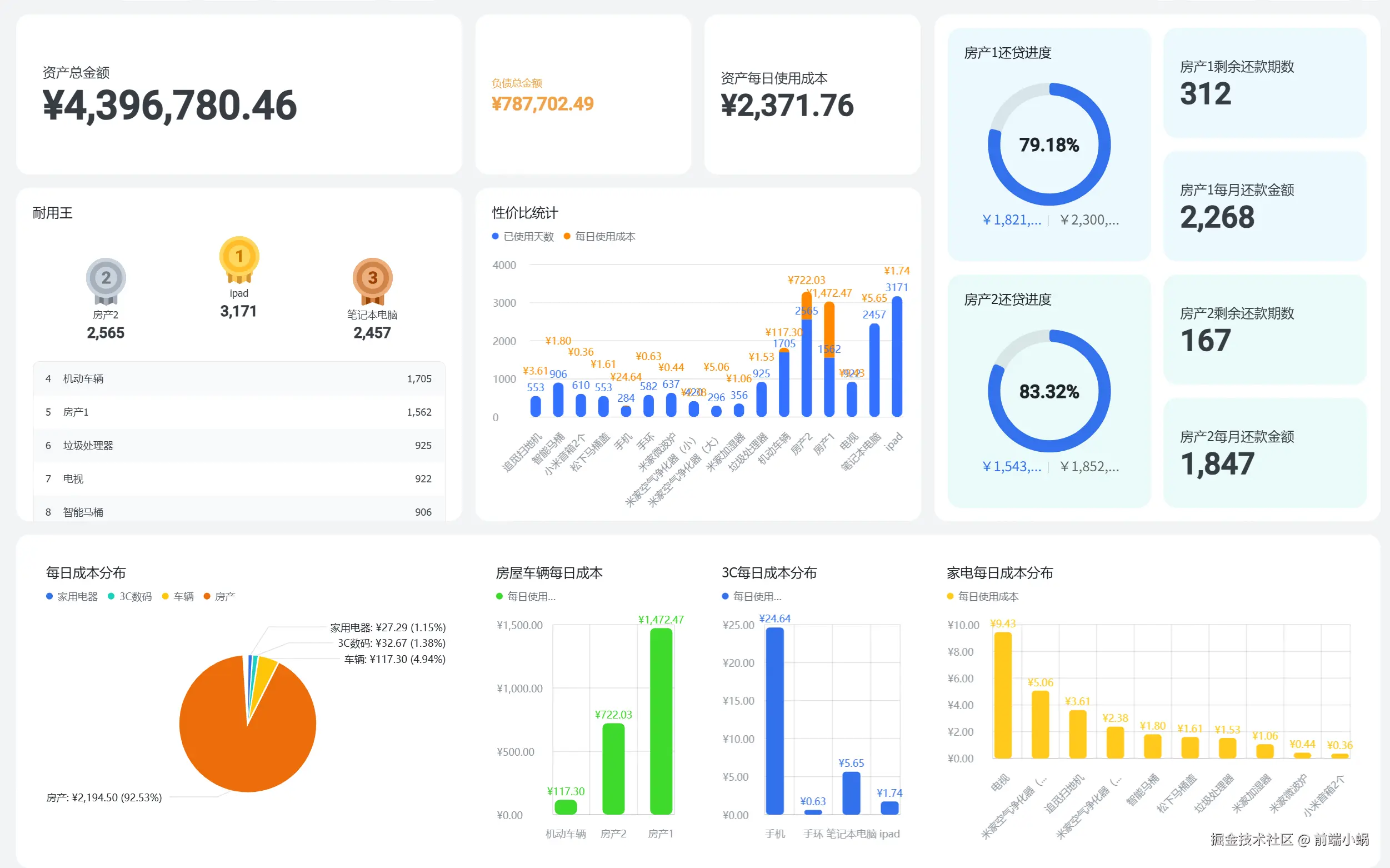 我换了个思路,做了一个 "资产净值" 看板。