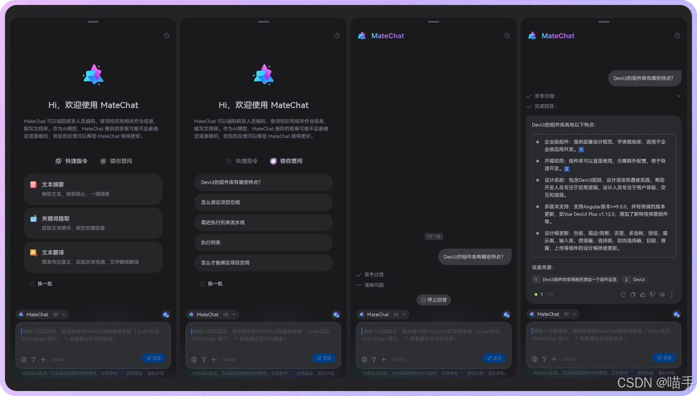 从 DevUI官网 的精美组件,到 MateChat 的智慧赋能,这套组合拳为开发者提供了一条清晰的提效路径。未来已来,让我们用代码和智慧,去构建更美好的数字世界!