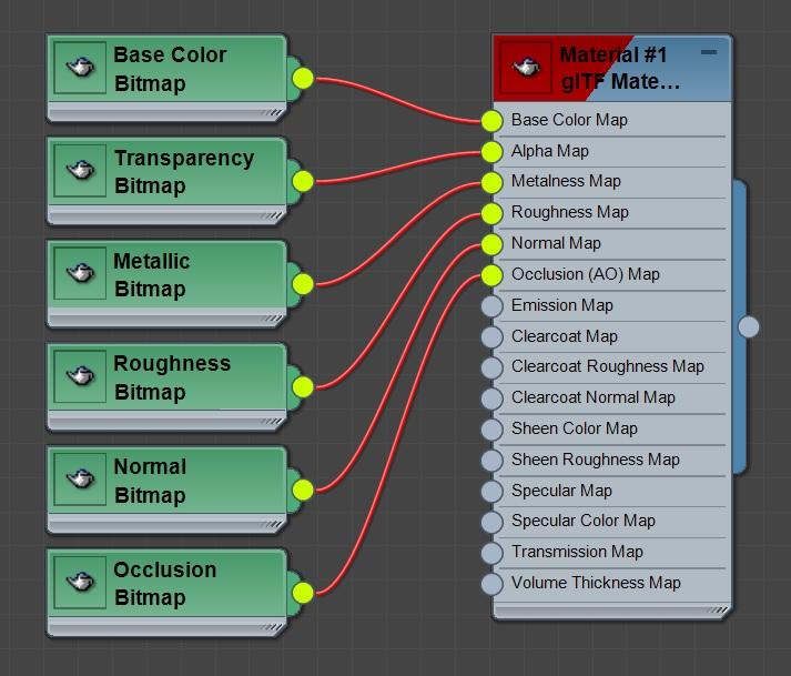 如果你的内容需要完全兼容 glTF 2.0 ,你需要使用简易素材设置。这种设置基于有限的3ds Max节点集合,这些节点之间应相互连接,官方下载3ds Max导出glb/gltf格式。具体如下说明。