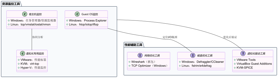 优化过程中需借助工具监控资源使用状态,定位性能瓶颈,以下是高性价比的工具推荐(涵盖宿主机与Guest OS):