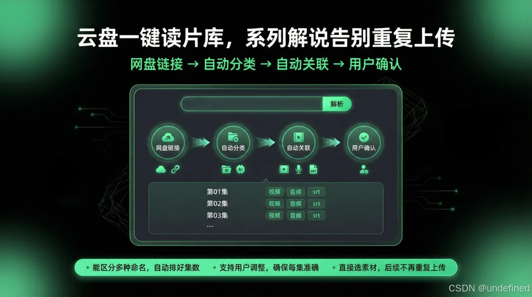 云盘为批量创作而生。如果你是个人玩家,这个功能对你来说可能只是好用 ;但如果你把解说内容当生意做,这个功能就是为你量身定制 的生产力倍增器: