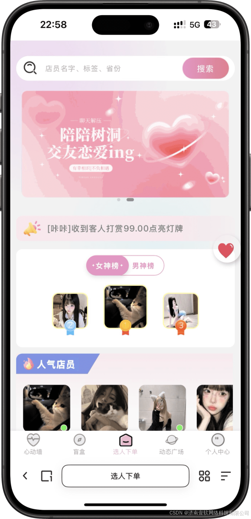 热点数据缓存: 将首页轮播图配置、服务提供者(店员)的在线状态等高频不变或变化频率可接受的数据,存储在 Redis 中,设置合理的过期时间(TTL)。
